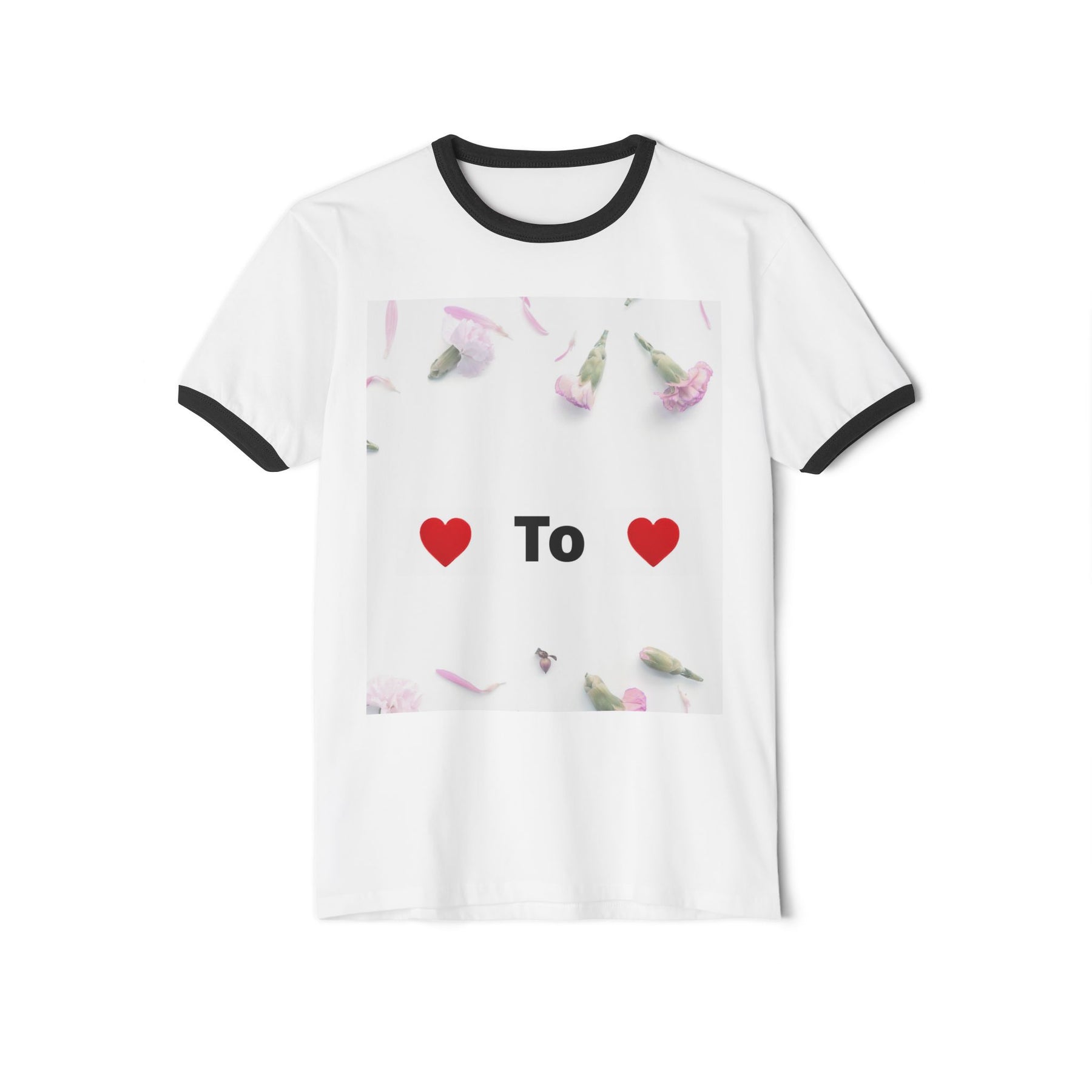 Lightweight and laid-back, this ringer tee reads like a quiet note folded into a pocket. The soft white body and contrasting black collar and sleeve trim frame a simple, heart-forward design that speaks in small, intimate gestures. Worn during slow mornings, city walks, or when visiting someone who appreciates subtle declarations, it settles comfortably against the skin and moves with you. The classic fit and breathable fabric make it easy to layer under a cardigan or wear on its own — a familiar companion that nudges conversation without shouting. It’s the kind of shirt that feels like a personal message: gentle, clear, and quietly affectionate.